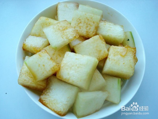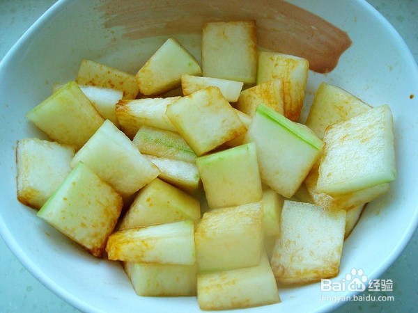 4、把冬瓜块里面加生抽和少许盐拌均匀,这样好入味