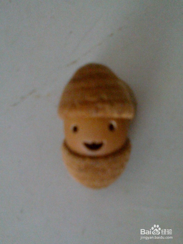 5、在果帽适当均匀涂抹白乳胶,然后把果帽粘在果壳原先掏洞的一边并矫正,最后同样在另一边粘多一个果改醒帽就完成了