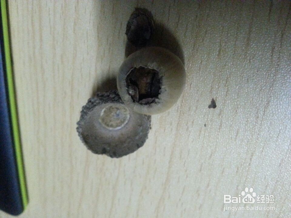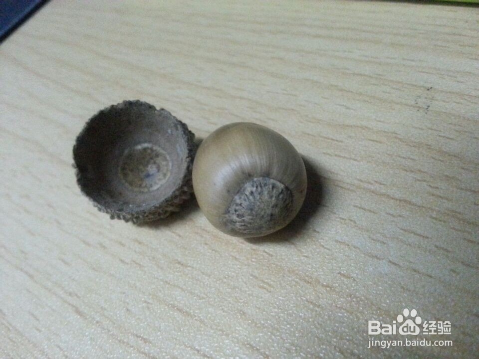1、把栎子顶部凿开,再把里面的果仁一小部分一小部分挖出,不要弄裂果壳
