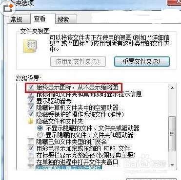 1、有的朋友可能是文件夹中的存放的视频或音频文件过多,打开文件夹时win7会预览文件,从而导致一瞬间CPU利用率过高,然后explorer停止 工作。解决方法就是关闭缩略图功能,操作方法计算机--组织---文件夹选项---查看,勾选始终显示图标,从不显示缩略图,取消以缩略图形式显示文件图 标即可。