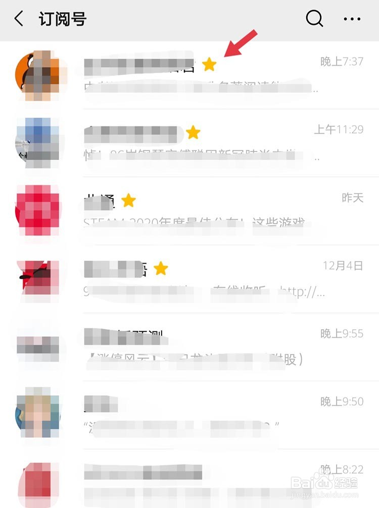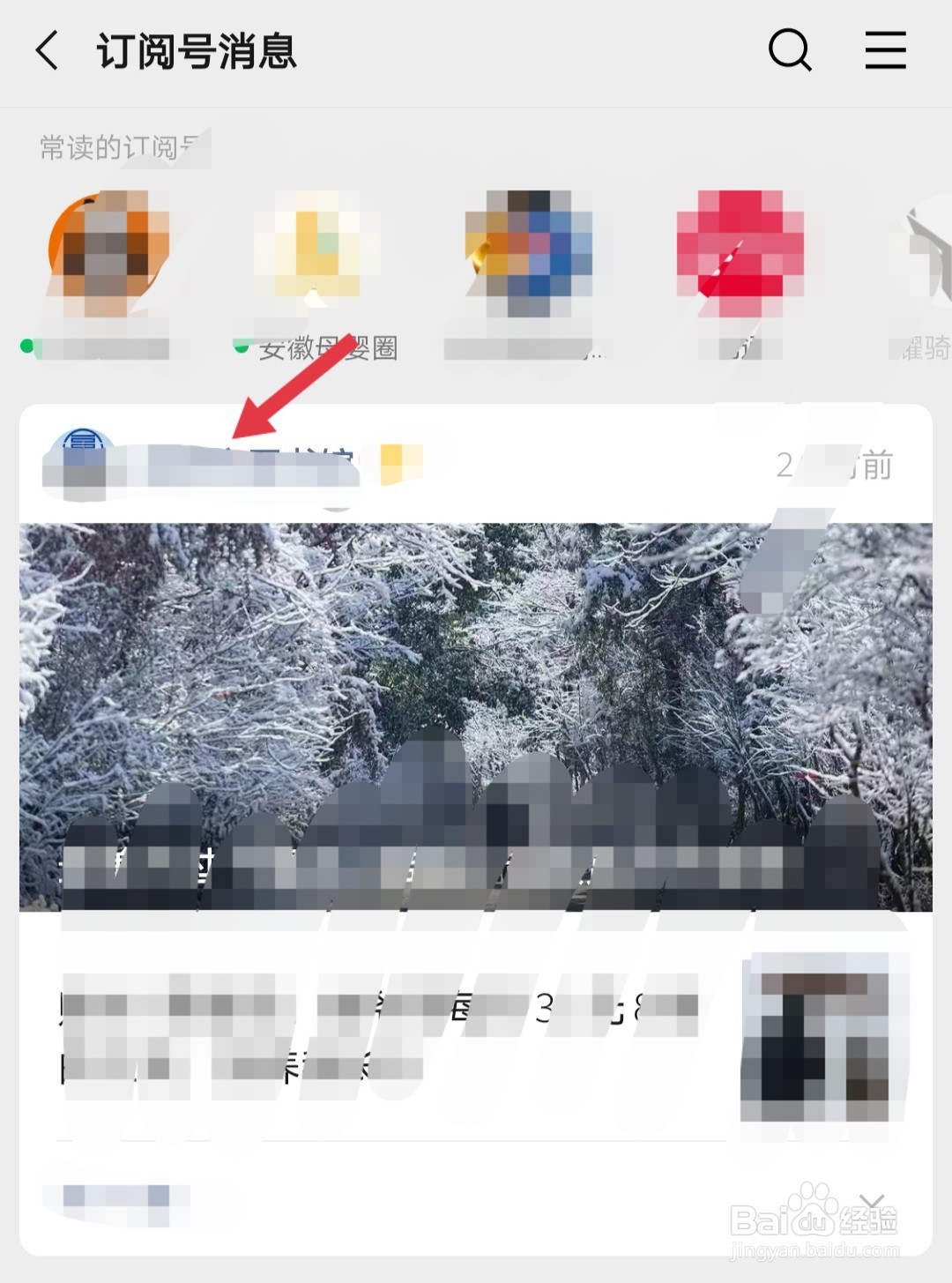 1、首先打开聊天消息页面,点击【订阅号消息】进入订阅号消息页面选择一个要加星标的订阅号点击其头像或名称进入其公众号