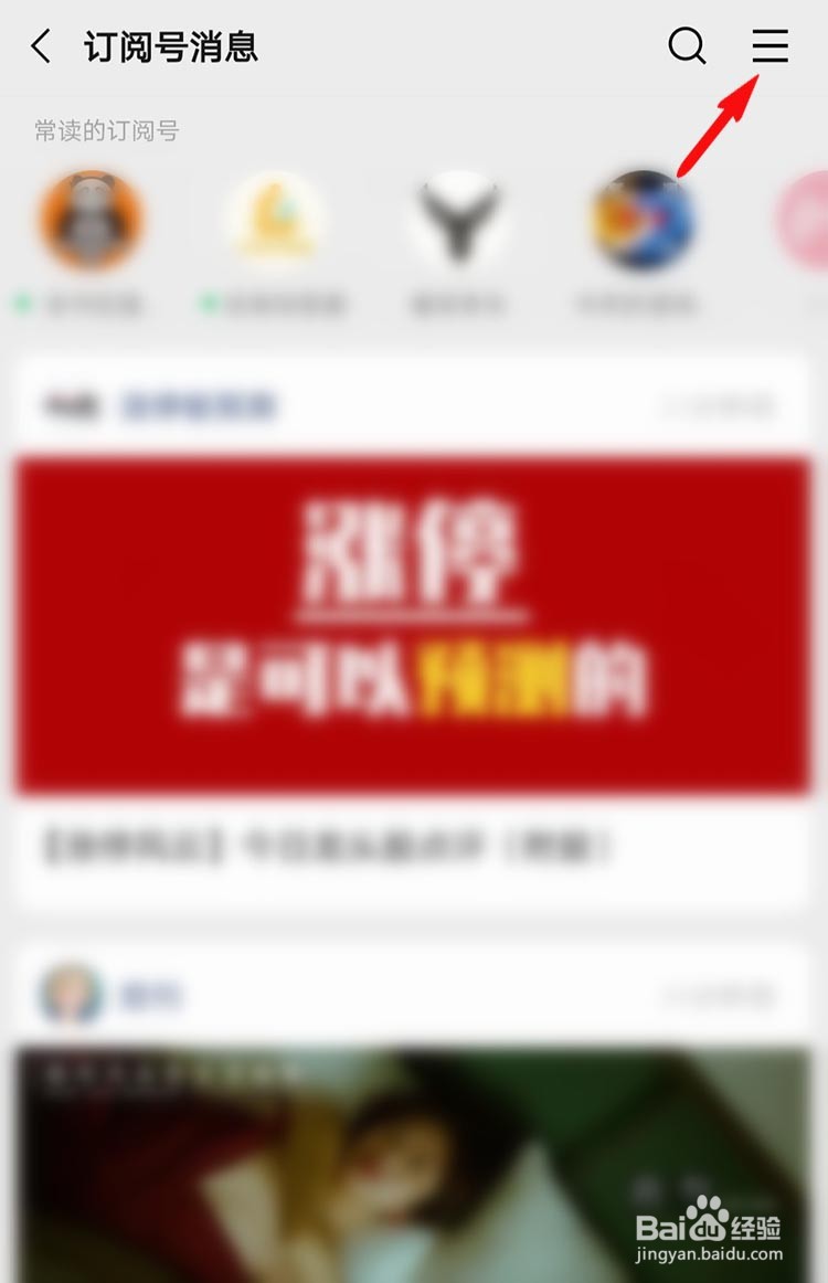 4、回到聊天消息页面,点击【订阅号消息】,然后点击右上角‘三’标志,会弹出所有订阅号列表,此时设为星标的订阅号就会显示在众订阅号的顶端了。