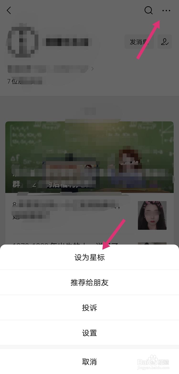 3、点击此页面右上角横三点标志,会在页面下方弹出功能列表,选择【设为星标】