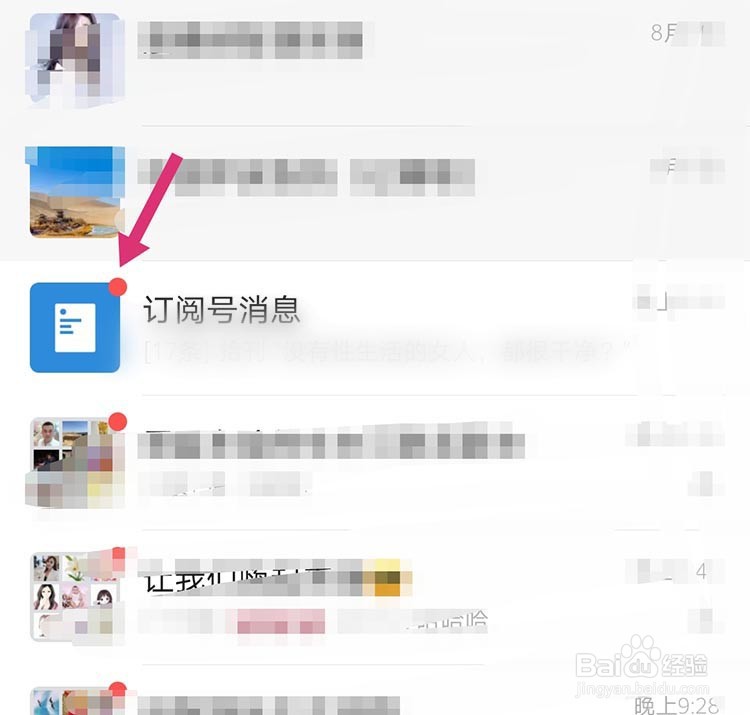 下面就服务号置顶的方法说明下,打开微信在聊天消息页面我们先随意选择一个服务号(公众号),点击进入