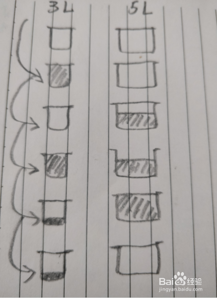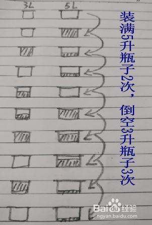 A:有两个瓶子,一个装3升,一个装5升,瓶子上没有刻度标识。用这两个瓶子能否从水桶里取出刚刚好的1升水?如果能,怎样取?不能的话,为什么?