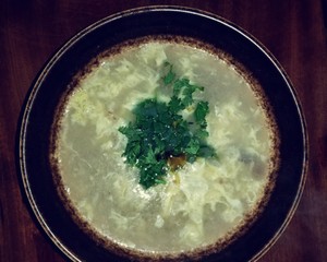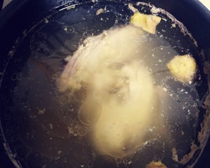 用料:白条鸡半只、麦仁80克、姜5片、五香粉1勺、白胡椒粉3勺、面粉80克、水2500克、盐适量、酱油2勺、鸡蛋1个/碗、香菜适量、香油适量。