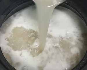 7、面粉加水搅匀(是面粉不是淀粉哦),在鸡汤沸腾的时候倒入鸡汤内。糁的底汤就做好了,底汤不宜太浓稠,还要冲鸡蛋的。