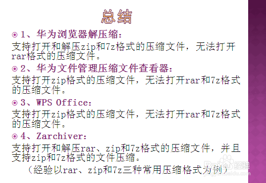 7、我还尝试了另外两种常用的压缩格式,发现rar格式的压缩文件无法使用手机自带的浏览器和文件管理器打开,7z格式的压缩文件只能用华为浏览器打开和解压。
