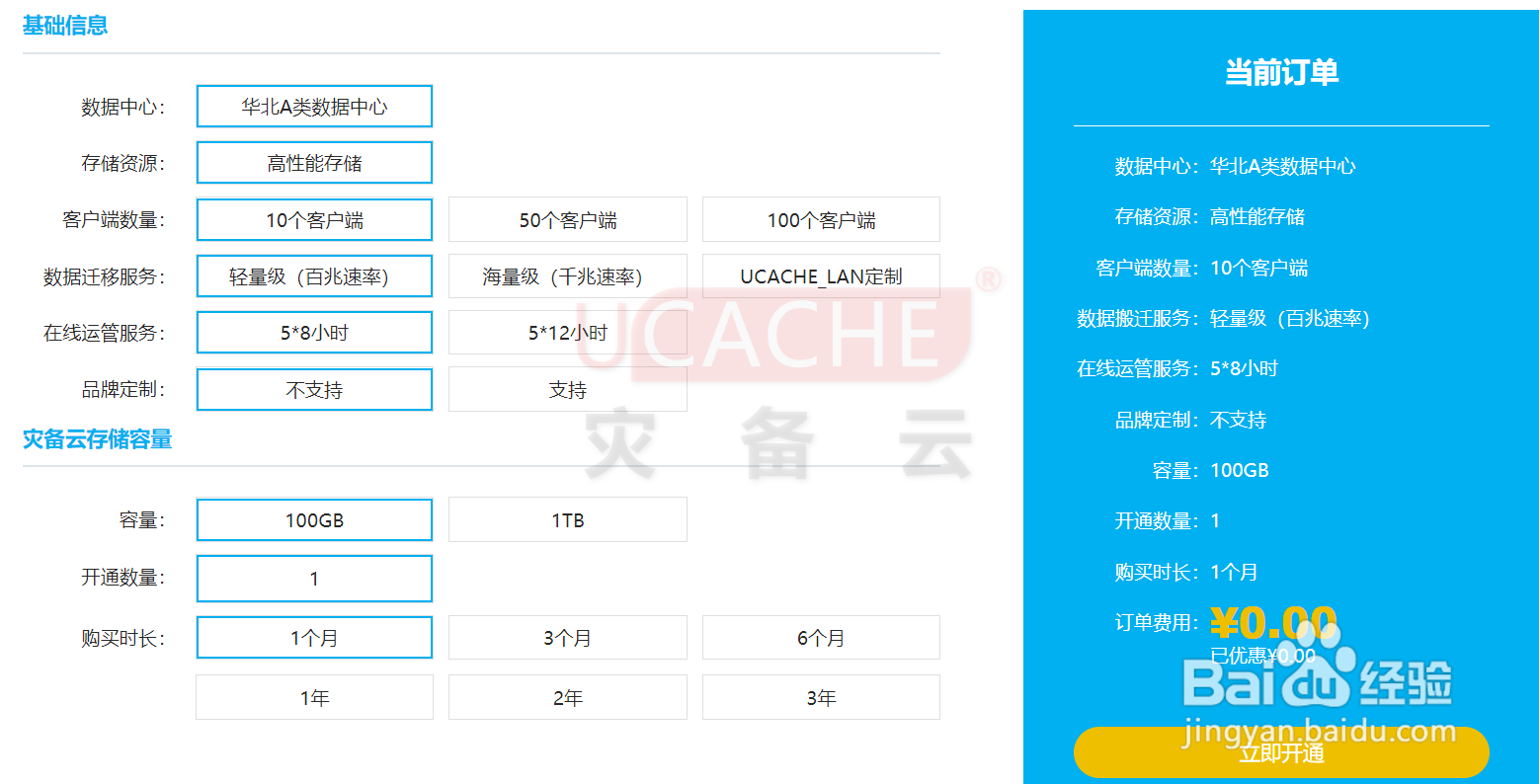 【ucache灾备云】平台进行申请开通,有三种型号:轻量级、海量级、定制级,可按需找客服开通。