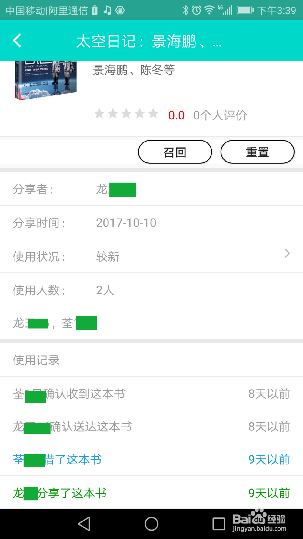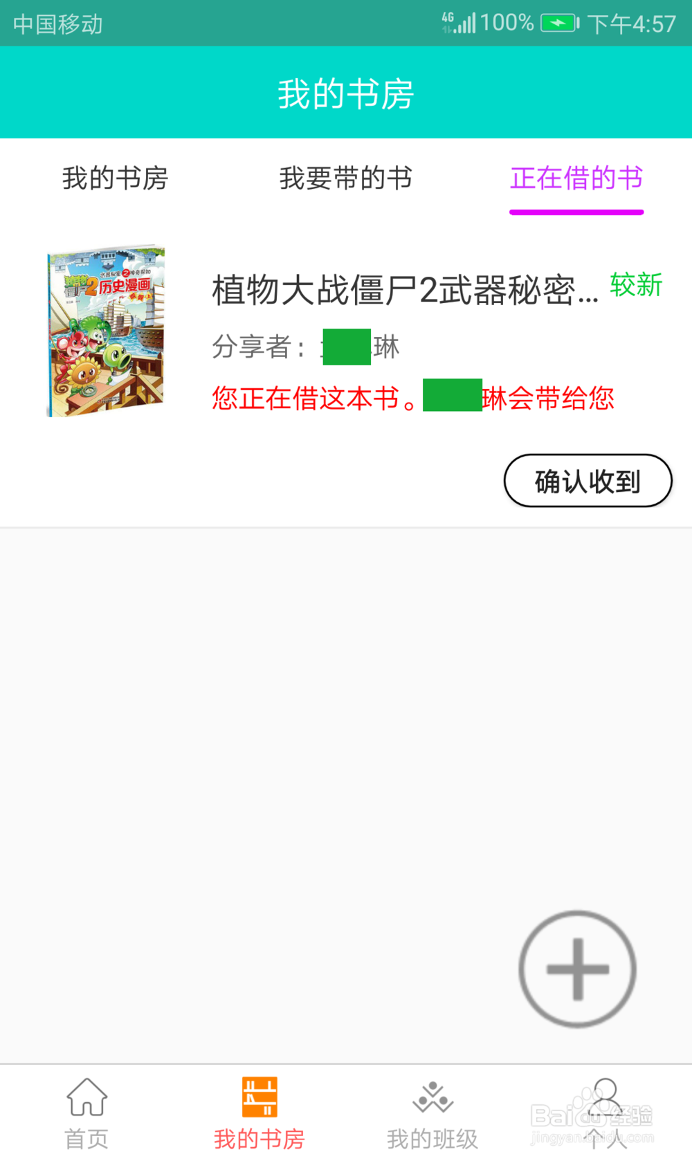 12、“正在借的”的书,收到书后,确认收到。