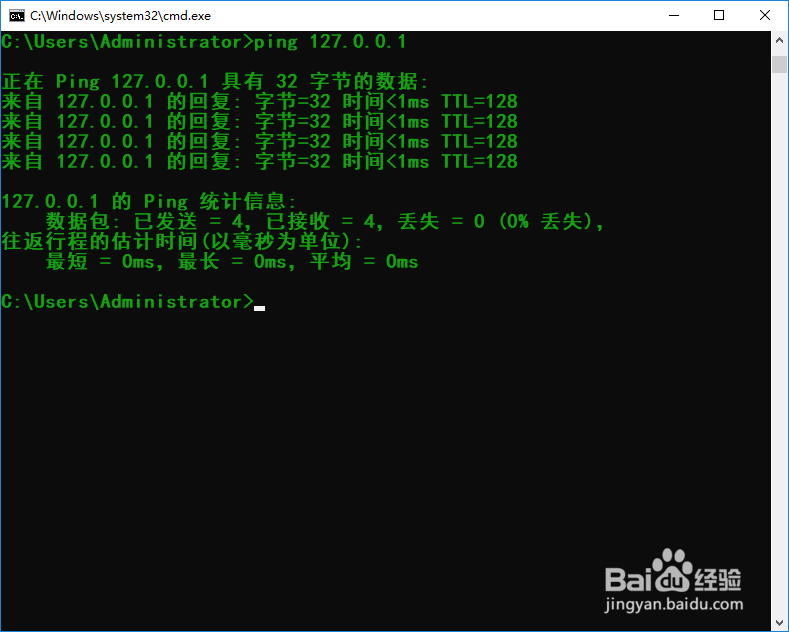 输入ping 127.0.0.1 再按下Enter会像图片中的内容
