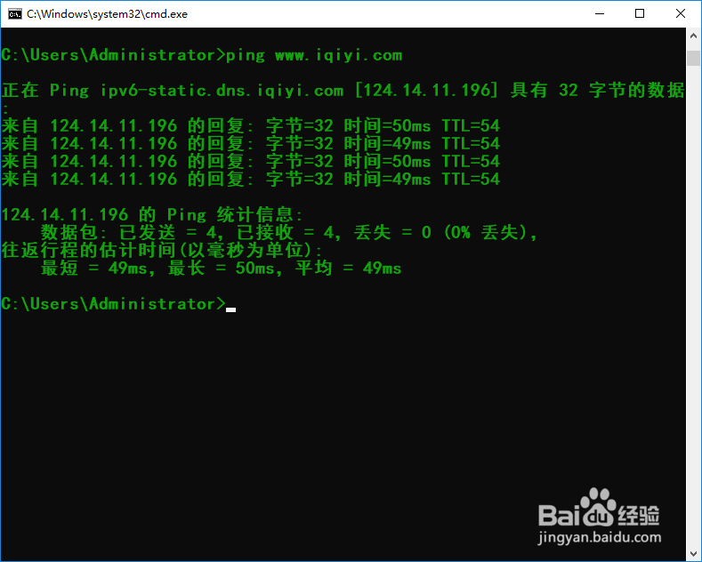 2、"ping"命令的格式:【Ping空格IP地址(域名)】