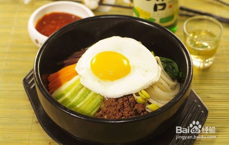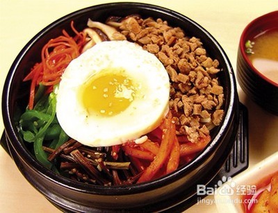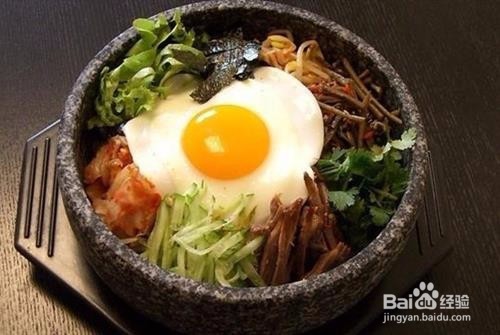 6、最后将石锅置于火上,小火加热两三分钟,会听到米饭在锅内发出嗞嗞的声音,吃时将饭菜辣酱一起拌匀即可