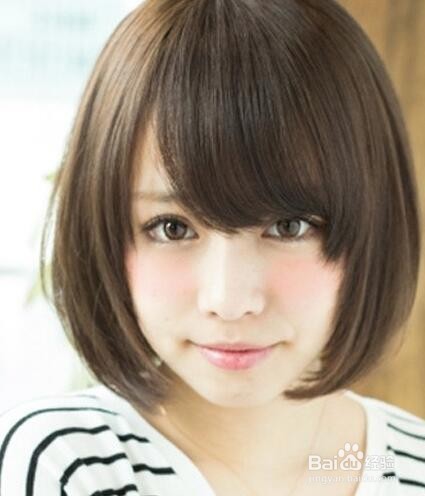 2、短发是圆脸妹纸的首选发型,清澈明亮的眼睛在自然深棕的齐刘海之下充满魅惑,稍稍内扣的发尾更显萌萌哒。