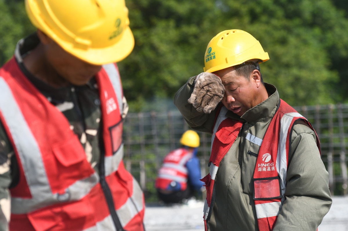 高温下的劳动者户外工作者坚守街头岗位