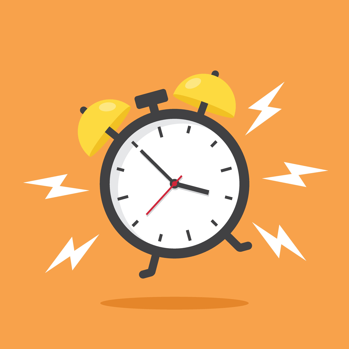 黄色卡通时钟时间中标闹钟元素手绘扁平风人物工作元素原创插画海报