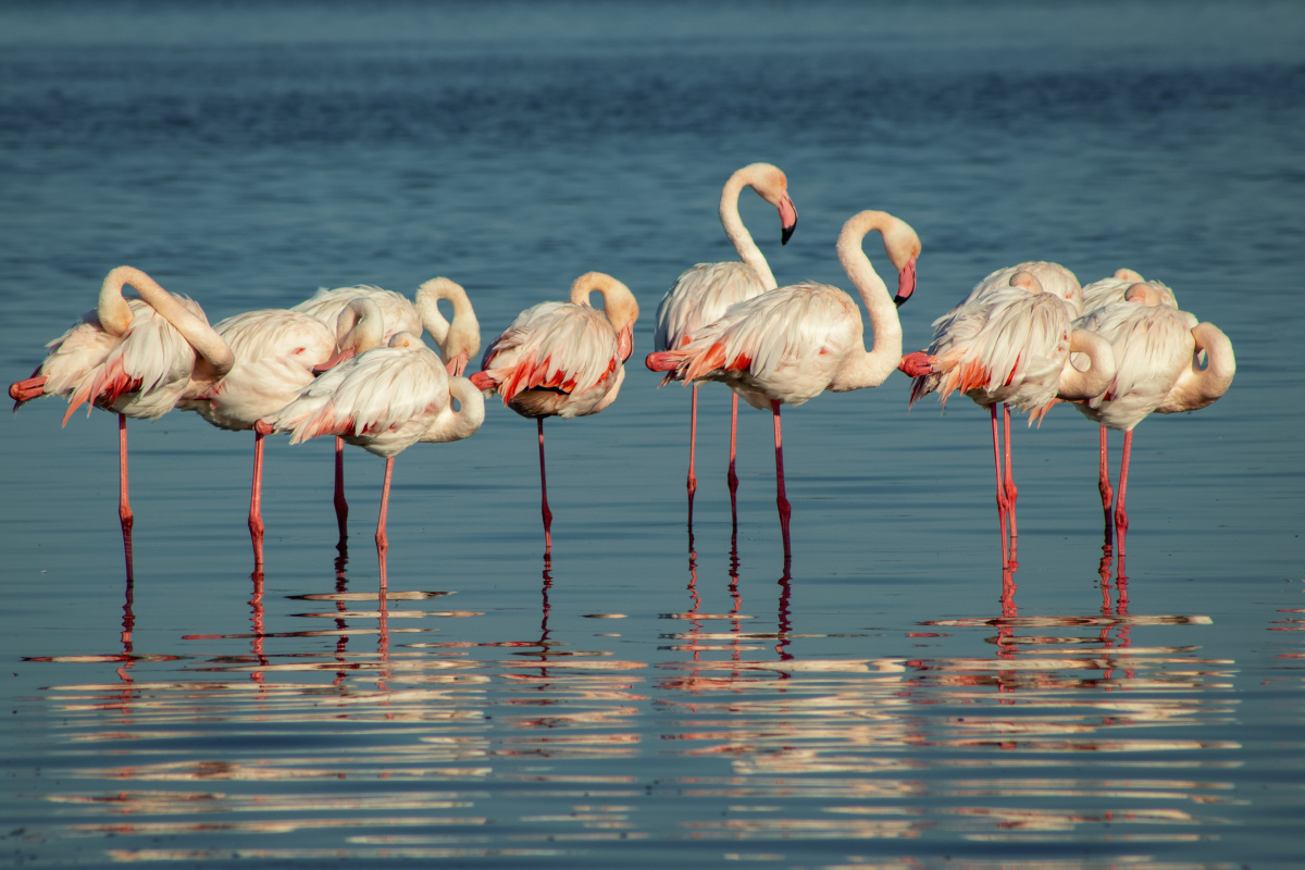 火烈鸟是温血动物,有一双纤细修长的美腿,它们经常单腿站立,是因为